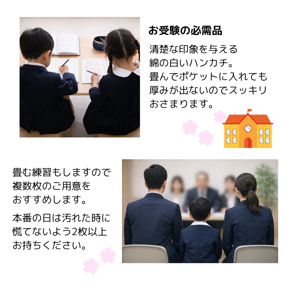 お受験、幼稚園入園準備、小学校入学準備ハンカチ。